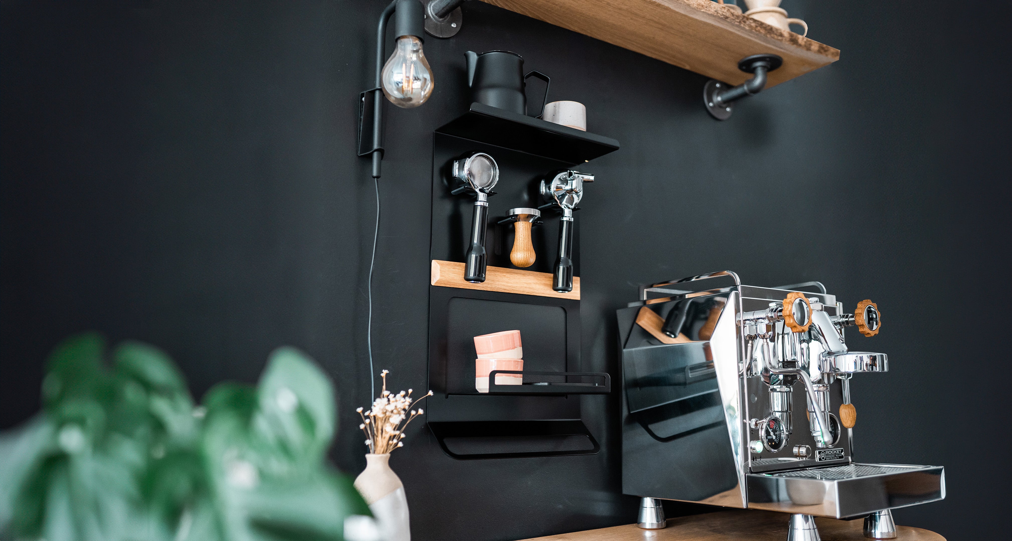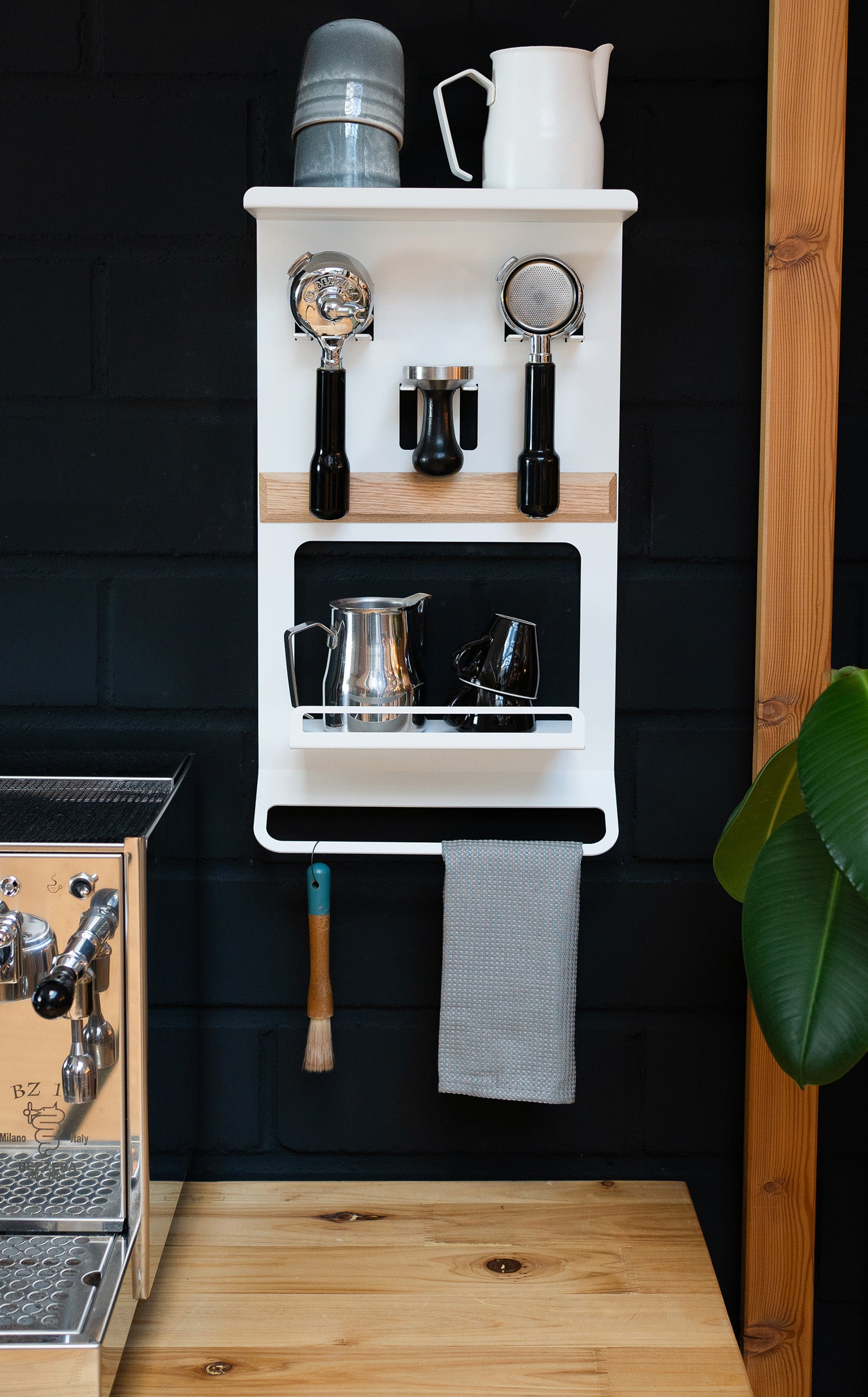 Oavsett om det är 2 eller 3 hängande hållare för tamper eller portafilter, stående eller väggmonterade - hyllan kommer att vara det viktigaste tillskottet till din portafiltermaskin, oavsett vilken tillverkare den kommer från.