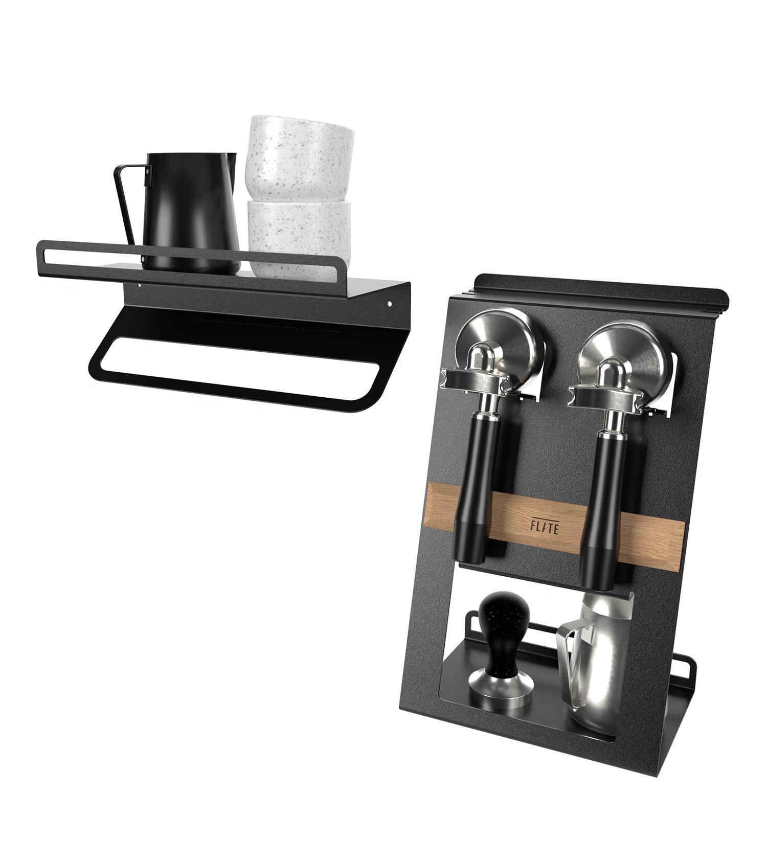 FLATE® Barista-hyllorna ger ordning och reda i din kaffebar, oavsett vilken maskin du har eller hur mycket utrymme du har. Hyllorna finns i två olika storlekar, så att du hittar de hållare och förvaringsalternativ som du behöver.