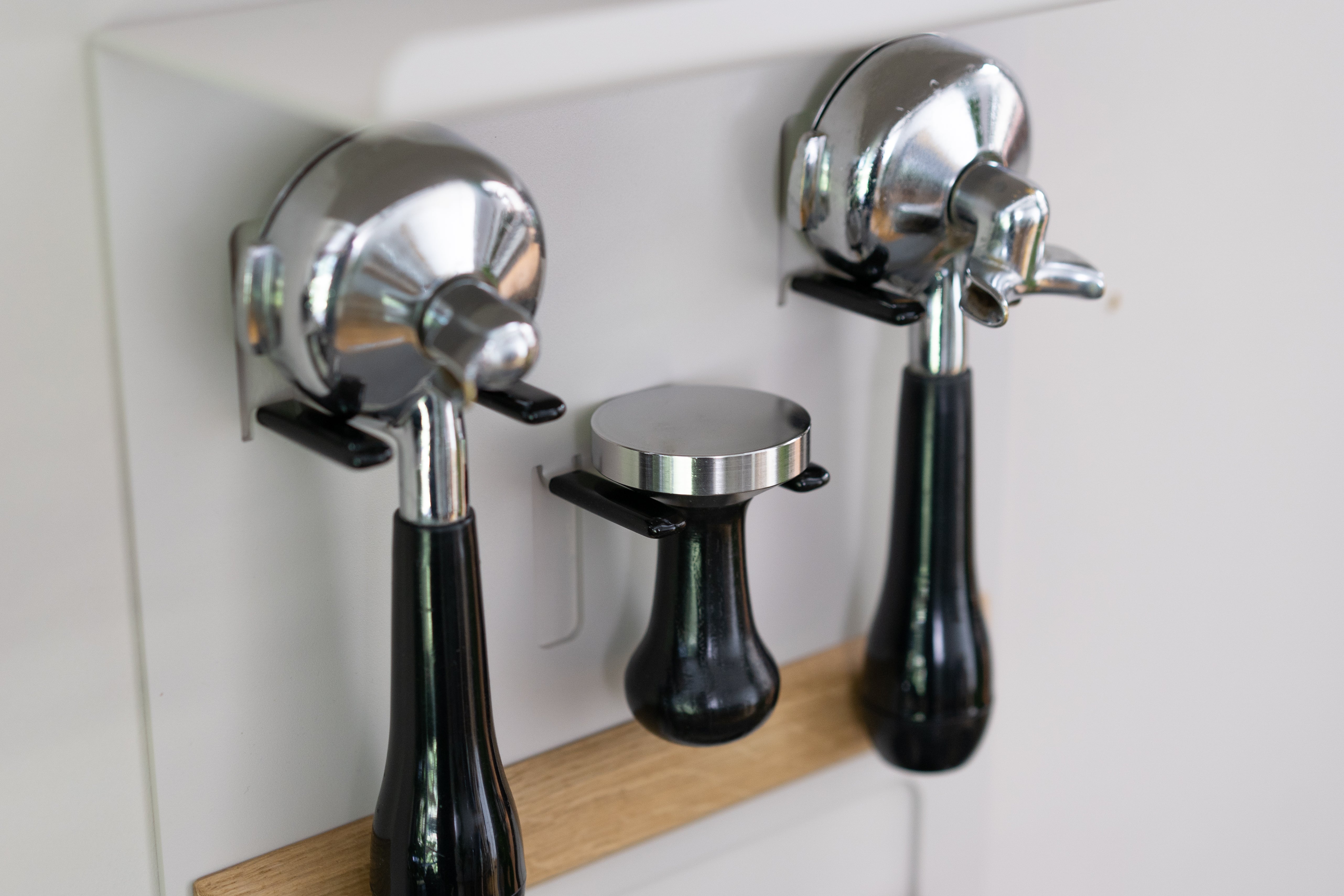 Organizer hylla för portafilter, tamper och baristatillbehör