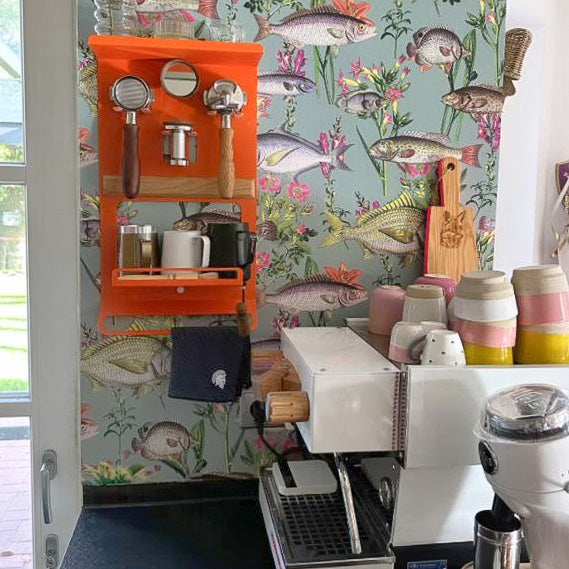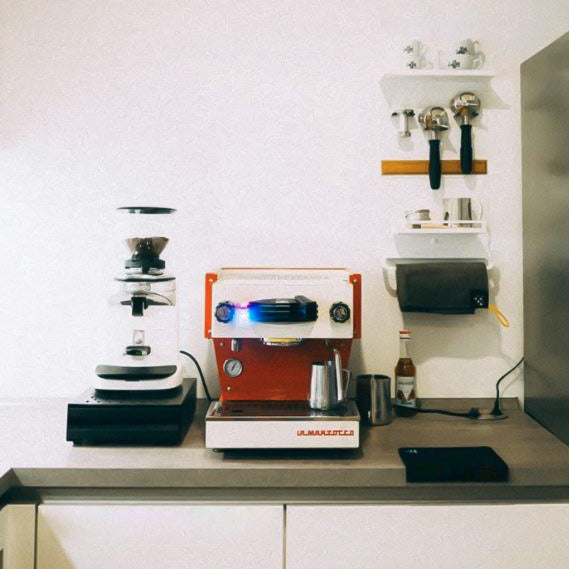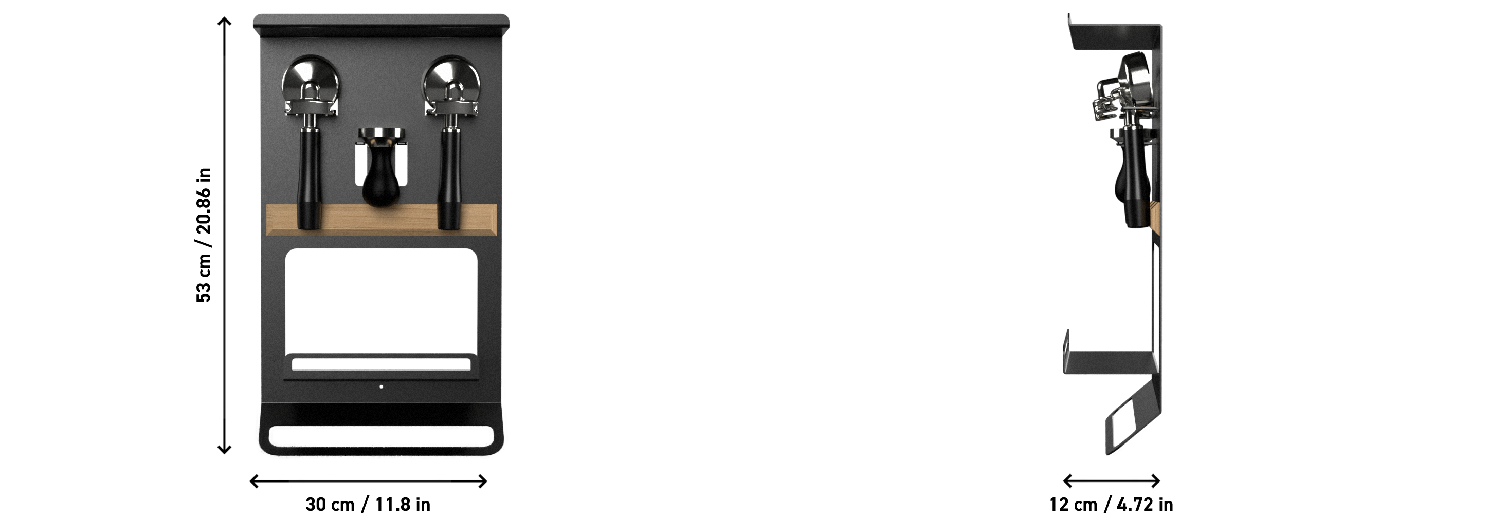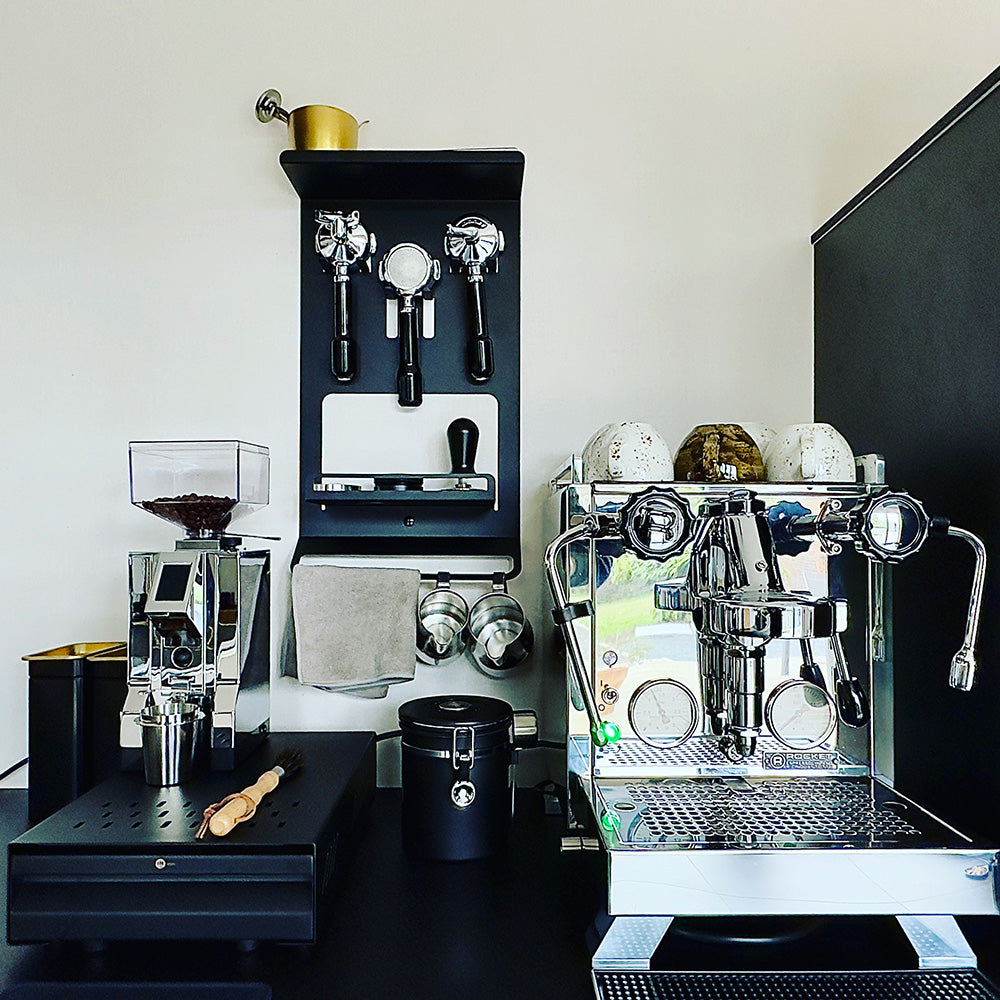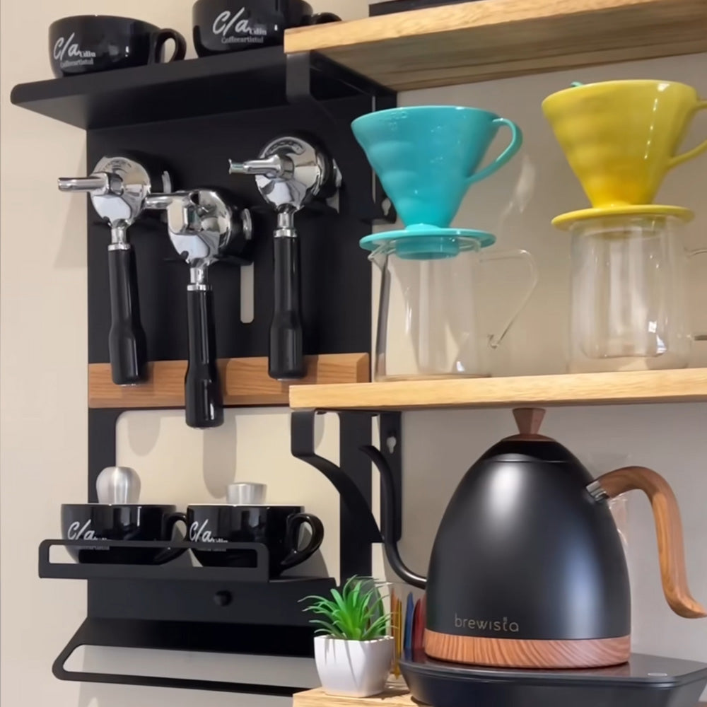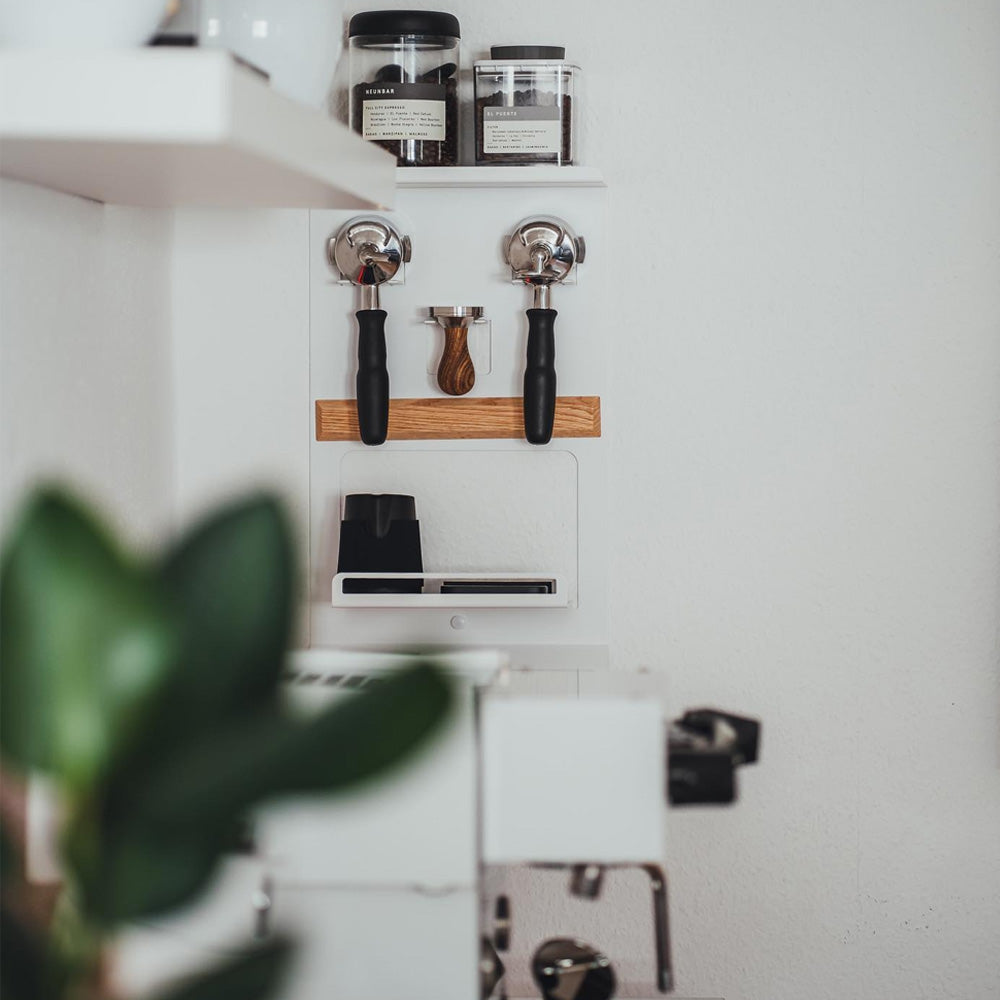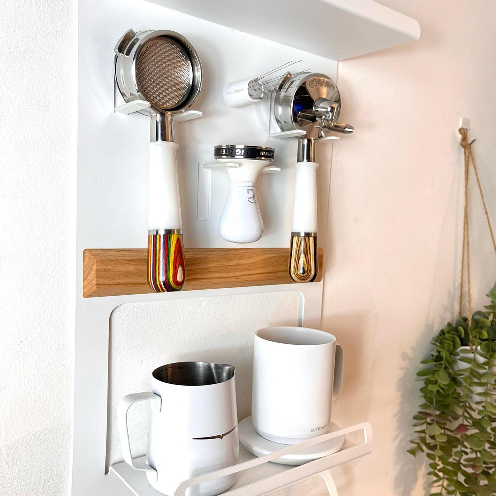 Barista hylla för portafilter, tamper och kaffetillbehör