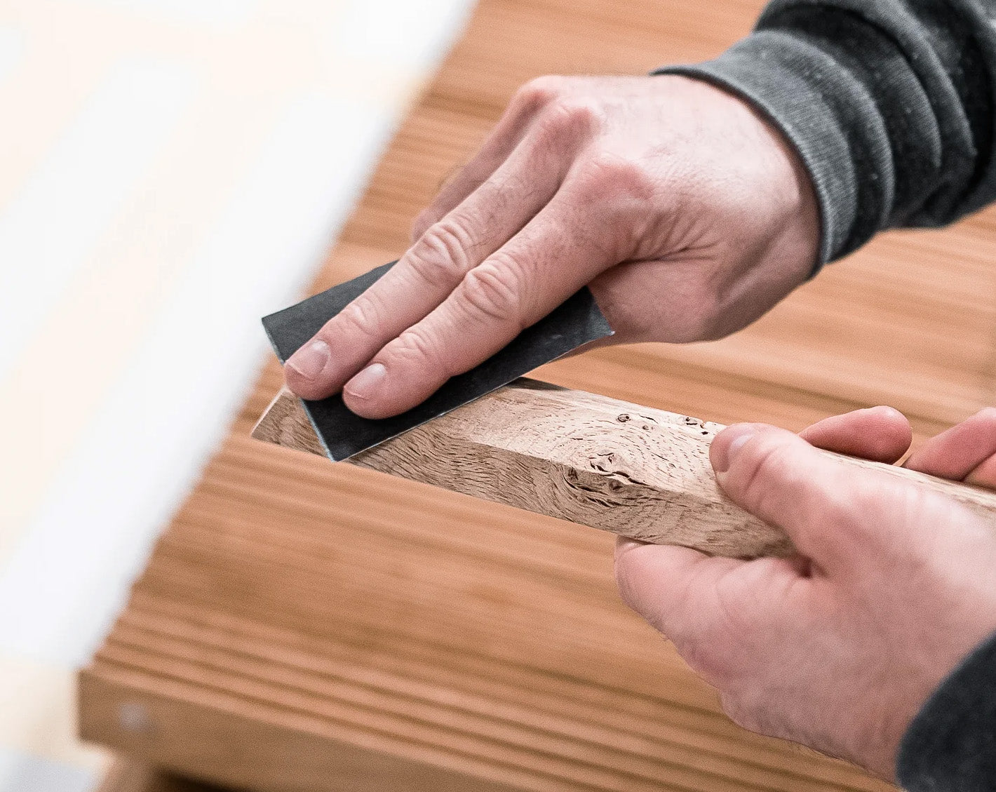 Varje list är helt unik, noggrant utvald och tillverkad för hand. Efterbearbetning och ytbehandling med olja ger trälisten bättre motståndskraft mot dagligt slitage samtidigt som den behåller sin naturliga skönhet.